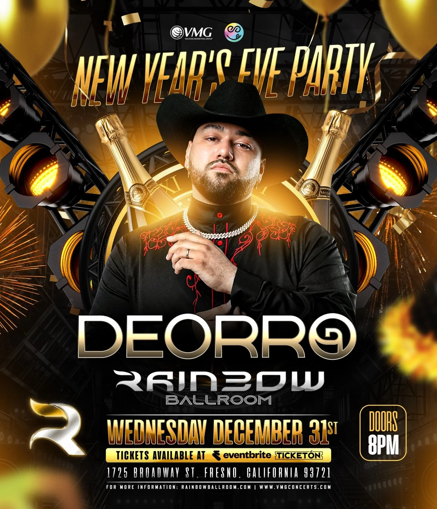 Celebrate New Year’s Eve at Rainbow Ballroom with an unforgettable performance by Deorro. Known for his dynamic blend of EDM, Latin influences, and globally recognized hits, Deorro delivers a high-energy show that keeps the crowd moving all night. Join Fresno for a sleek, elevated night out as we count down to 2026 with one of the most respected names in dance music. Doors open at 8 PM — secure your tickets while they last.